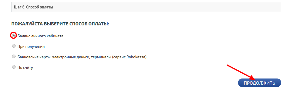 Выбираем способ оплаты и нажимаем кнопку «Продолжить».